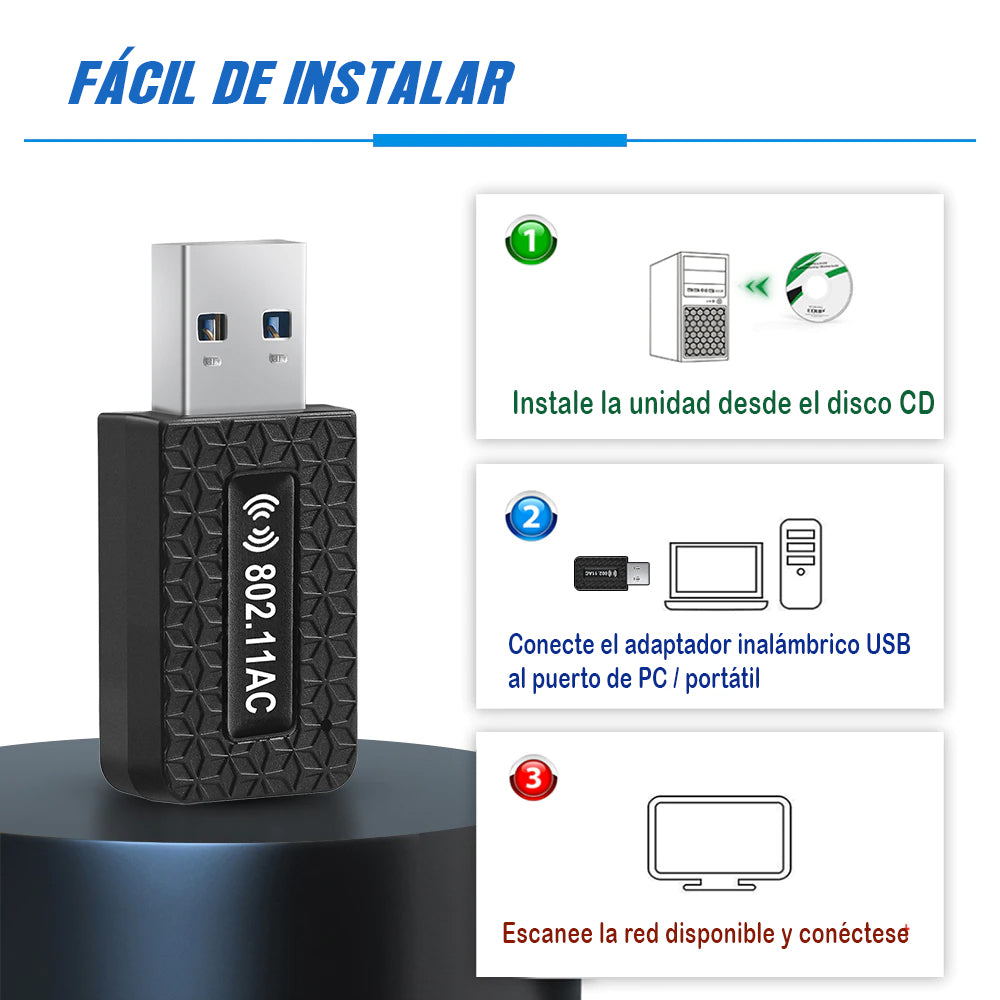 - Con tecnología de transmisión de alta velocidad AC1300. - La interfaz USB3.0 es 10 veces más rápida que USB2.0 * hasta 867Mbps en 5GHz y 400Mbps en 2,4 GHz. - Puerto USB compatible con dispositivos USB 2,0 y 1,1. - Velocidad máxima bajo el enrutador de WiFi-6. - El Modo AP crea un punto de acceso inalámbrico para compartir más dispositivos. - apoyo Windows XP/Vista/7/8/10/Mac OS? - Admite funciones de recepción y transmisión WiFi.